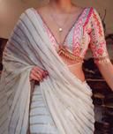 White Designer Party Wear White georgette sequence work saree with heavy designer blouse