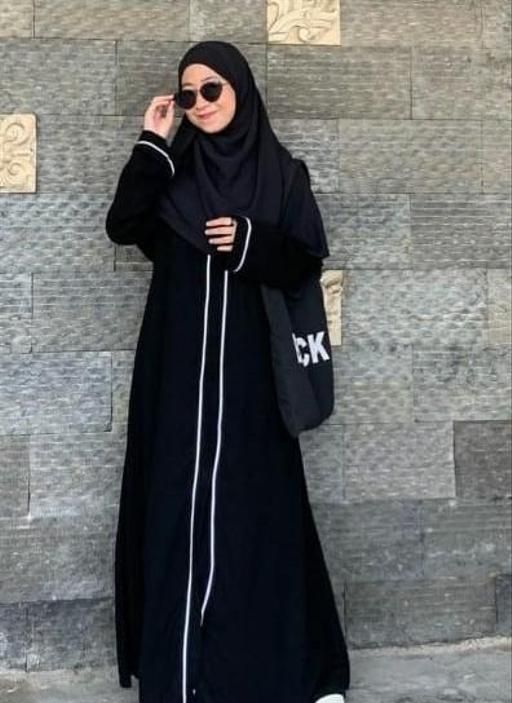 Name: ELEGANT NEW TRENDY DESIGNER BURKHA WHITE PIPING MODERN ABAYA FOR WOMEN BLACK ABAYA BURQA (WITHOUT HIJAB)