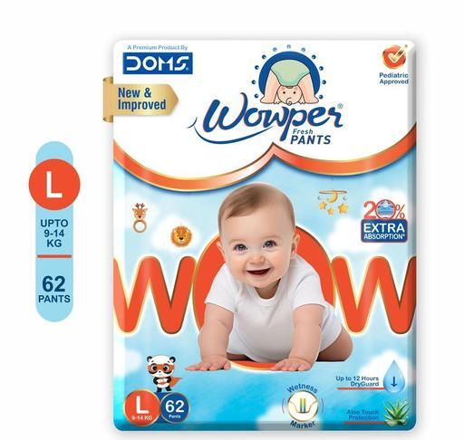 Product Name: Wowper Fresh Baby Diapers Pants | Wetness Indicator | Upto 12 Hrs Absorption | 9-14 Kg | Large - 62 Pieces