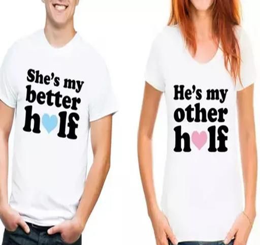 COUPLE WHITE KING QUEEN T SHIRT Fabric : Polyester Pattern : Printed Net Quantity (N) : 2 Shop from a wide range of T-Shirt from . Perfect for your DAILY use, you could pair it with a stylish pair of Jeans or Trousers complete the look. Sizes : MEN - S/ WOMEN - S (Men Chest Size : 38 in, Men Length Size: 25 in, Women Bust Size: 34 in, Women Length Size: 23 in) MEN - M/ WOMEN - M (Men Chest Size : 40 in, Men Length Size: 26 in, Women Bust Size: 36 in, Women Length Size: 24 in) MEN - L/ WOMEN - L (Men Chest Size : 42 in, Men Length Size: 27 in, Women Bust Size: 38 in, Women Length Size: 25 in) MEN - XL/ WOMEN - XL (Men Chest Size : 44 in, Men Length Size: 28 in, Women Bust Size: 40 in, Women Length Size: 26 in) MEN - XXL/ WOMEN - XXL (Men Chest Size : 46 in, Men Length Size: 29 in, Women Bust Size: 42 in, Women Length Size: 27 in) Country of Origin : India