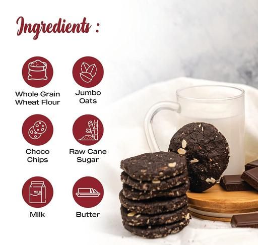 Name: Biesca Dark Choco Oats Cookies with Jumbo Oats Butter and Choco Chips 160g each (Pack of 2), Premium Handcrafted Biscuit, No Maida, No Preservatives, Eggless