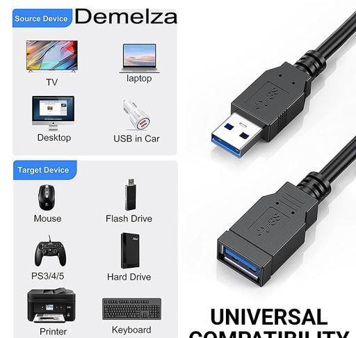 Name: Demelza USB Male to Female Extension Cable, 1.5 Meter 2.0 USB Extension Cable, USB A Male to A Female Cable, USB Extender for Tv, Pc, Hard Drive, USB Flash Drive, Mouse Keyboard, Webcam, Scanner