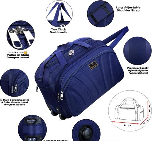 Name: 60 L Strolley Duffel Bag - Unisex Polyester Medium Size Travel Weekender Duffle Bag for Men & Women