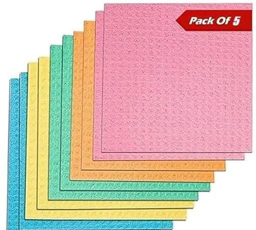 Name: Resuable and washable Sponge Wipes with super absorbant biodegradable cellulose material for kitchen and home cleaning (Multicolored) - Pack of 5