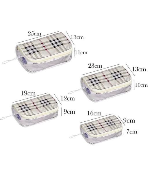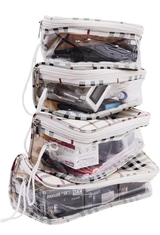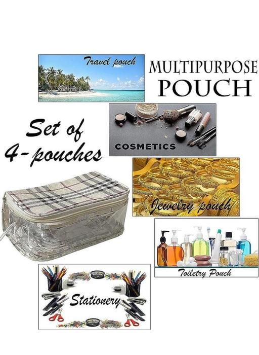 ? Multipurpose Pouches Contains 4 sets of pouches with different sizes in one pouch. This Multipurpose Pouch set of 4 pcs bag can be used for a several purposes, use this Pouch to store your cosmetic bag, jewelry, coin purse, toiletries, Medicine etc travel pouches can be easily stored when not in use as it fits one inside the other occupying less space Stylish & Portable - it is small enough to fit into any travel luggage, backpack, and even carried on one hand! Whether you are travelling for business or personal reasons.