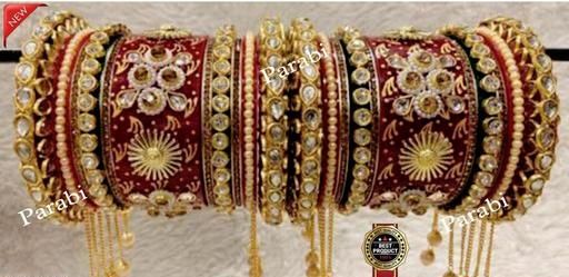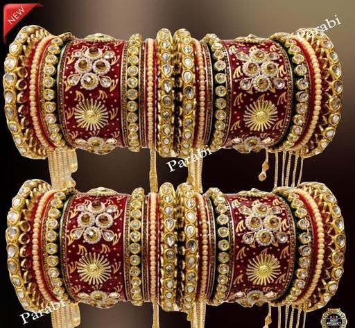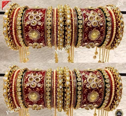 Name: RED MULTICOLOUR LATKAN Heavy Alloy Gold-plated Rajkot Style Bridal Chuda Bangles Set For Girls And Women..