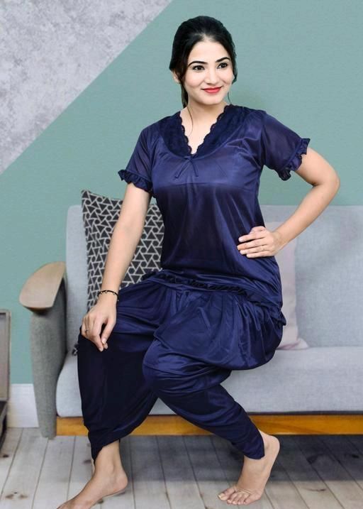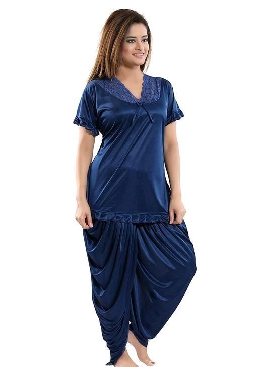 Name: Stylish & Fancy Design Night Suit For Women/Ladies/Girls | Women Night Dress | Top Pyjama Set (Dhoti and Top) Nightsuit for Women | for Wedding/Honeymoon Night | Decent & Classy Look | Nightsuit | Nightwear | Women's Patiala Top Nightsuit Set