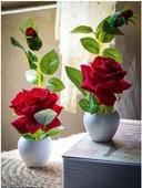 KanRaj ® Artificial Rose Flower Set of 2 Roses with pot (Natural Looking)