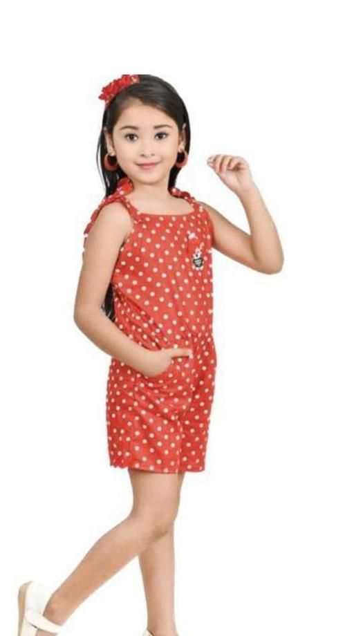 Name: jump suit for girls | red with white polka dots, embroidery, relaxed, one-piece, jumpsuit, adjustable straps, pull-on, sleeveless, square, straight, short, side pockets, Girls, casual, cotton, summer, headband