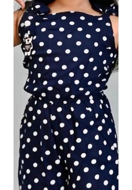 Name: jump suit for girls | navy blue with white polka dots, short sleeves, square neckline, wide legs, relaxed, one-piece, polka dot jumpsuit, adjustable straps, none/pull-on, cap sleeve, square, regular, straight, above knee, unlined, some stretch, Girls, casual, cotton blend, summer