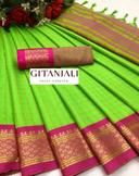NEW GITANJALI COTTON SILK CHEX SAREE WITH JARI WOVEN DESING FOR WOMEN