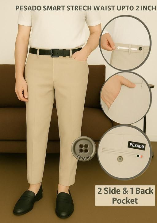 Name: Men's SMART FLEXI Beige Formal Trousers Pants(ADJUSTABLE WAIST UPTO 2 INCH)