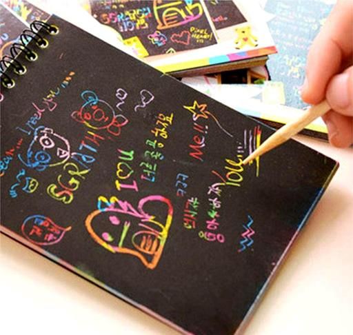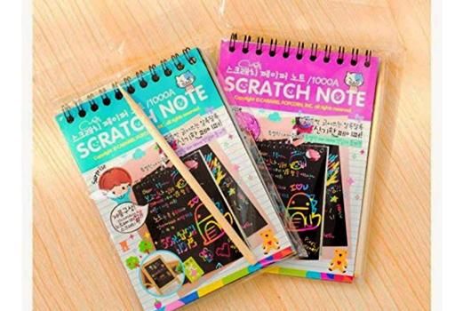 • PACKAGE INCLUDES : 2 Pcs A6 size, magic rainbow spiral scratch book, total 20 pages with bamboo sticks.