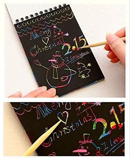 Name: Scratch Book Magic Doodle Scratch Art Activity 2 Scratch books (20 Pages) with 2 Wooden Stylus Stick for Arts and Crafts | Kids Return Gifts | Multicolour | Pack of 2