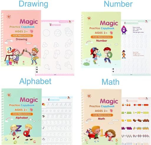 Name: Sank Magic Practice Copybook, (4 BOOK + 10 REFILL+ 1 Pen + 1 Grip) Number Tracing Book for Preschoolers with Pen, Magic Calligraphy Copybook Set Practical Reusable Writing Tool Simple Hand Lettering