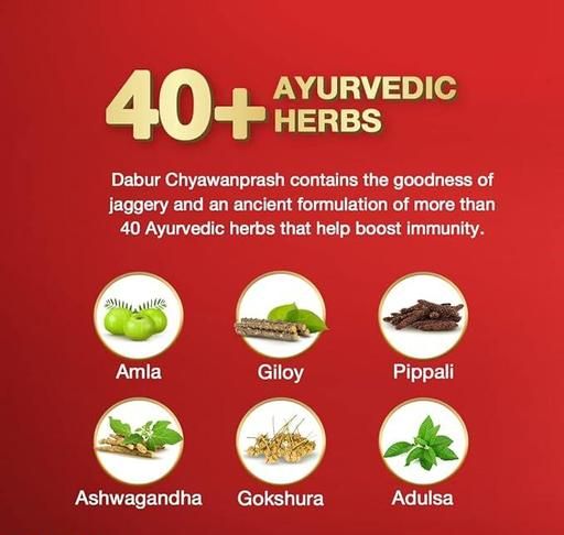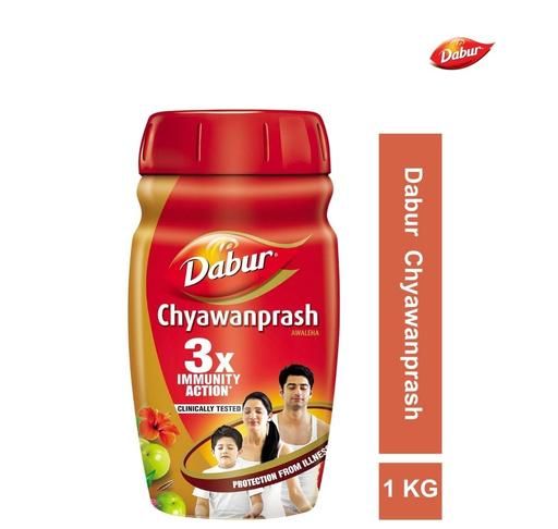 The primary action of Dabur Chyawanprash is to bolster the immune system and to support the body’s natural ability to fight illnesses . Amalaki (the main ingredient) aids in the elimination of ama (toxins). Therefore, regular use of Dabur Chyawanprash helps strengthen body’s natural defence systems. It builds the essence of immunity, promoting systemic health and well-being. ingredients of Dabur Chyawanprash are scientifically validated for their beneficial effects on health. It is considered one of the best family tonics—suitable for all ages from young children to the elderly. (Children above 3 years of age).