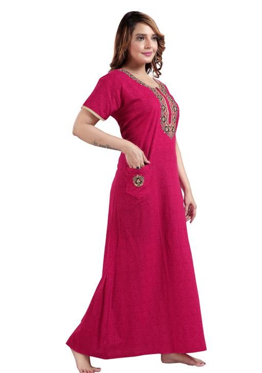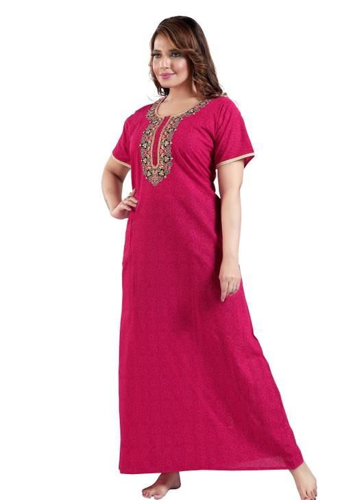 Cotton Permium Printed Cool Design & Stylish Front Embroidery Printed Women & Girls Nighty Material: Crafted from high-quality, soft, and breathable 100% cotton fabric for all-day comfort and suitability in various climates.