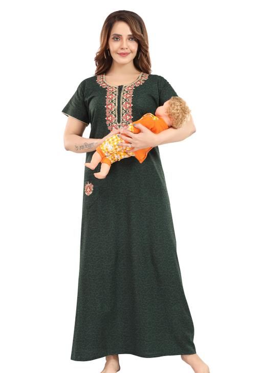 Cotton Permium Printed Cool Design & Stylish Front Embroidery Printed Women & Girls Nighty Material: Crafted from high-quality, soft, and breathable 100% cotton fabric for all-day comfort and suitability in various climates. Girl's And Women's Fashionable Short Sleeves Cotton ( Green )