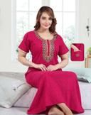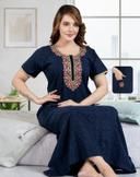 Cotton Permium Printed Cool Design & Stylish Front Embroidery Printed Women & Girls Nighty Material: Crafted from high-quality, soft, and breathable 100% cotton fabric for all-day comfort and suitability in various climates.