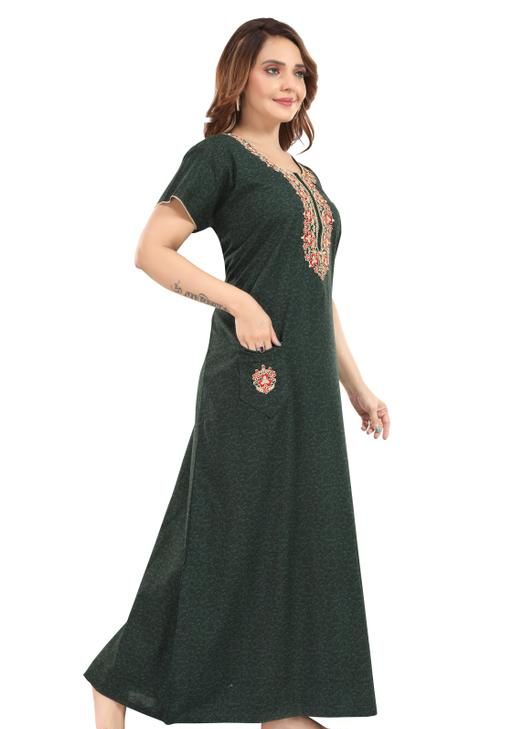 Name: Cotton Permium Printed Cool Design & Stylish Front Embroidery Printed Women & Girls Nighty Material: Crafted from high-quality, soft, and breathable 100% cotton fabric for all-day comfort and suitability in various climates. Girl's And Women's Fashionable Short Sleeves Cotton ( Green )