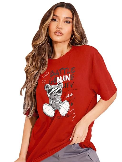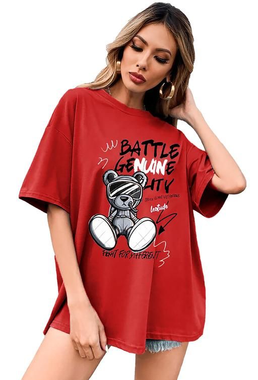 Name: LEOTUDE's Trendy Feminine Oversized Half Sleeve Cotton Blend Women's T-Shirt | Plus Size Also Available
