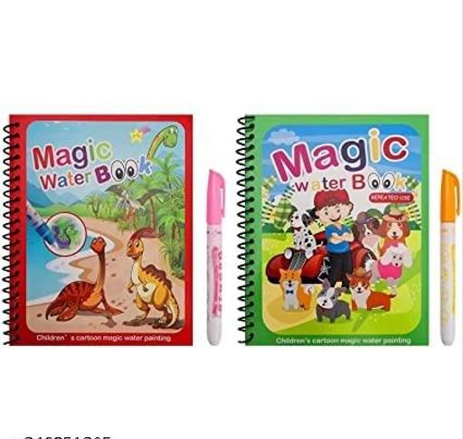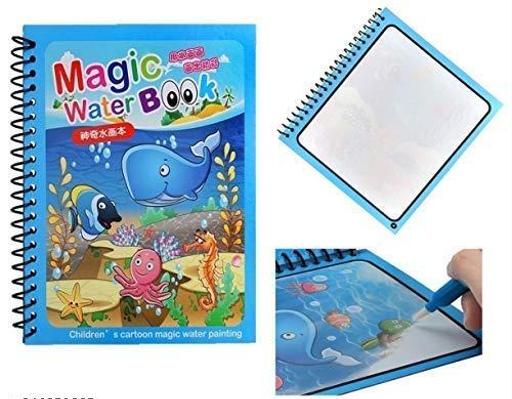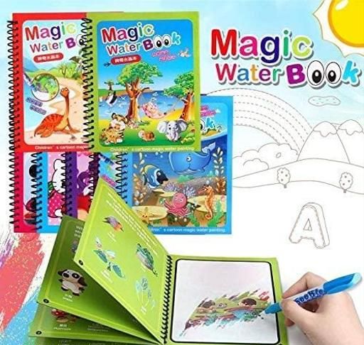 Name: Kid's Magic Water Colouring Books Unlimited Fun with Drawing Reusable Water-Reveal Activity Pad, Chunky-Size Water Pen for Kids – Random Book
