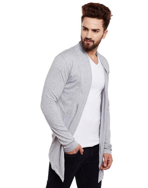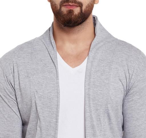 Name: Men Light Grey Open Long Cardigan Shrug Men's Stylish Solid Cotton Square Neck Collar Full Sleeves Cardigan/Shrug