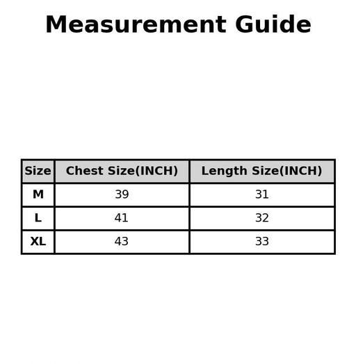 XL (Chest Size: 43 in, Length Size: 33 in)