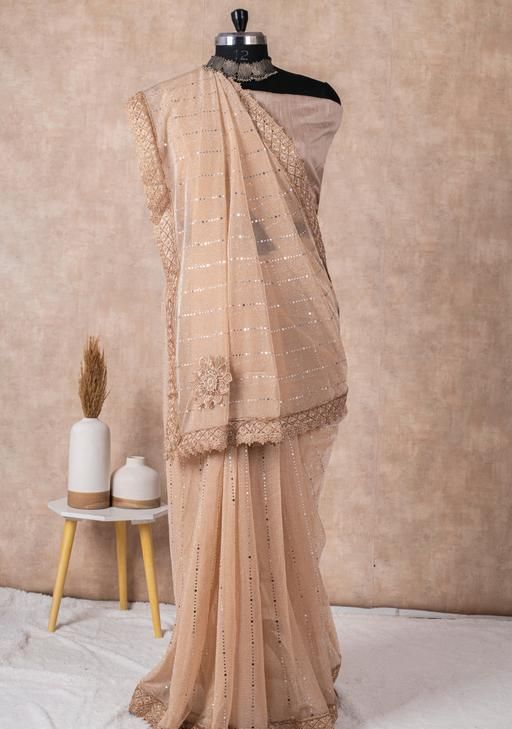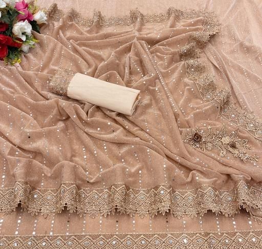 Name: SHIMMER SAREE WITH MIRROR WORK AND CHEMICAL LACE AND DIMOND HAND WORK