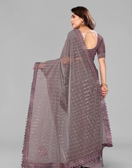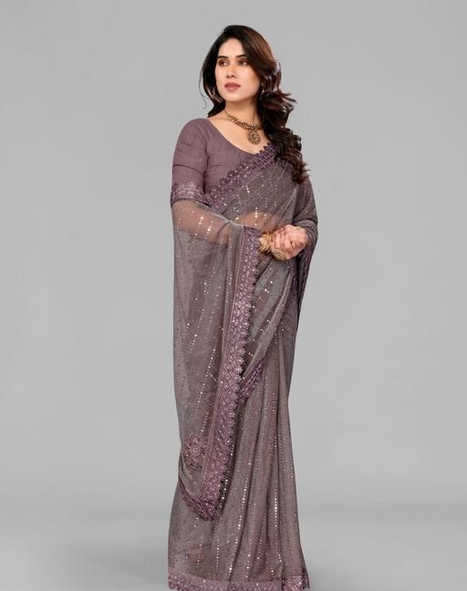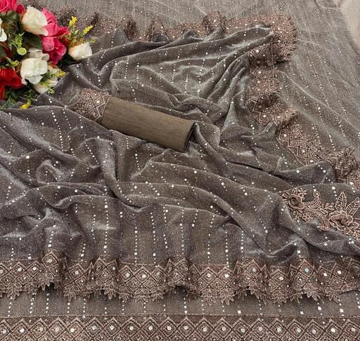 Name: SHIMMER SAREE WITH MIRROR WORK AND CHEMICAL LACE AND DIMOND HAND WORK