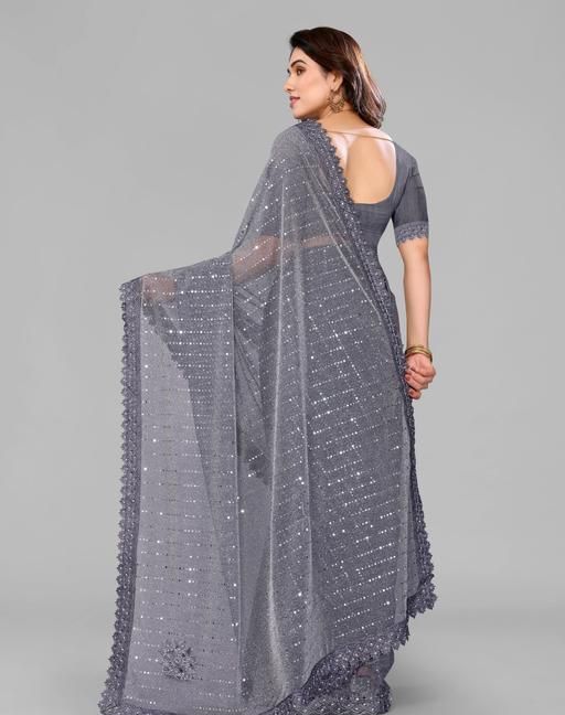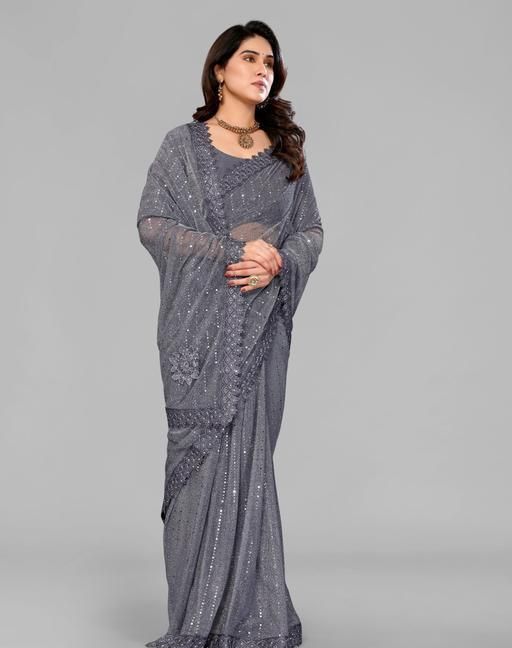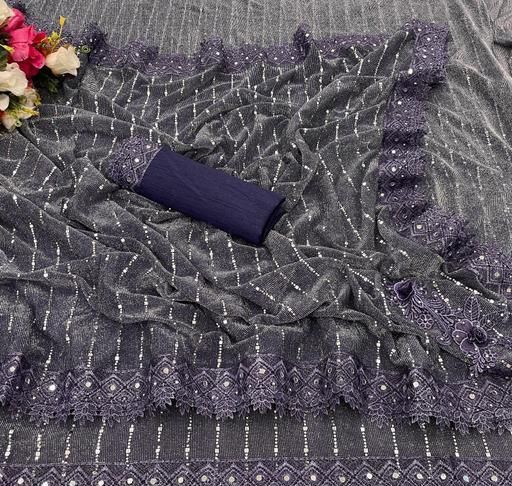 Name: SHIMMER SAREE WITH MIRROR WORK AND CHEMICAL LACE AND DIMOND HAND WORK