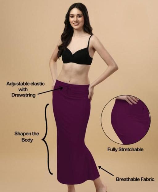 The Saree Shapewear Is Designed With A Targeted Compression To Smoothen Out And Flatter Your Abdomen, Thighs And Back, Making You Look Slimmer. Featuring A Seamless Waistband That Is Strong Enough To To Hold The Saree Tucks. A Side Slit On The Hemline For An Easy Movement. Unlike Other Available Saree Shape Wears, The Slits Are Thoughtfully Designed And Do Not Curve Outwards Giving Any Undesirable Perky Shapes At The Bottom. Crafted With 90% Lycra And 10% Spandex To Retain Its Shape. Can Be Worn Instead Of A Petticoat Or Under The Petticoat. Anti Chafing Thigh Band.