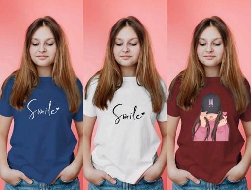 Name: Women's Stylish Cotton Round Neck Tshirts 100% Cotton Regular fit For Women And Girls Combo Pack of 3