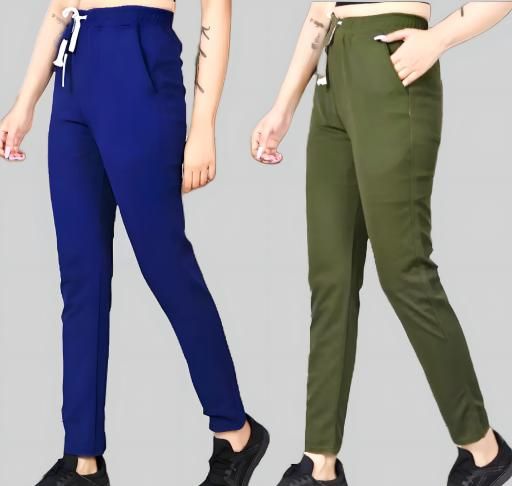 Pack of 2 Women Pantsets Multicolor Solid Blue,Olive Track Pants|Workout trackpants|Woman fashion trackpants.