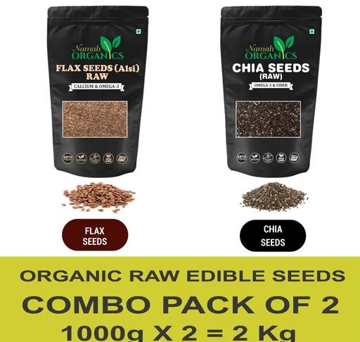 Raw chia seeds & Flax Seeds(1000GM EACH) combo for Weight Loss, Strong Bones, Hair growth and other Health Benefits with Omega 3, Fiber, Calcium, Magnesium and Zinc-Combo(total-2 KG)