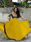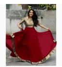 Gown Fabric : Georgette With Banarasi Brocade, Length : 53 Inch, Gown Flair : 4 Mtr With Banarasi Brocade Jecqcard Belt Border, Style : Flared Gown, Stitching : Full Stitched