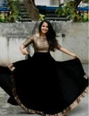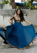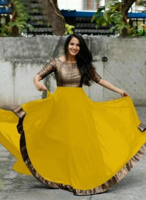 Gown Fabric : Georgette With Banarasi Brocade, Length : 53 Inch, Gown Flair : 4 Mtr With Banarasi Brocade Jecqcard Belt Border, Style : Flared Gown, Stitching : Full Stitched