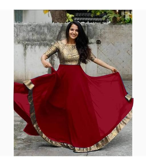 Gown Fabric : Georgette With Banarasi Brocade, Length : 53 Inch, Gown Flair : 4 Mtr With Banarasi Brocade Jecqcard Belt Border, Style : Flared Gown, Stitching : Full Stitched