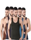 Men Combed Cotton Round Neck Vest -Pack of 5- Colour May Vary