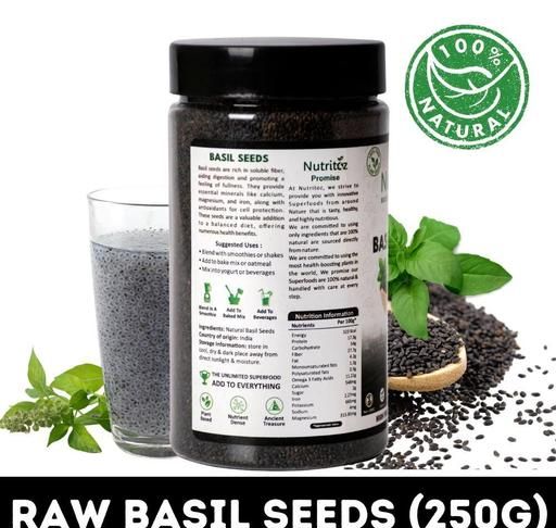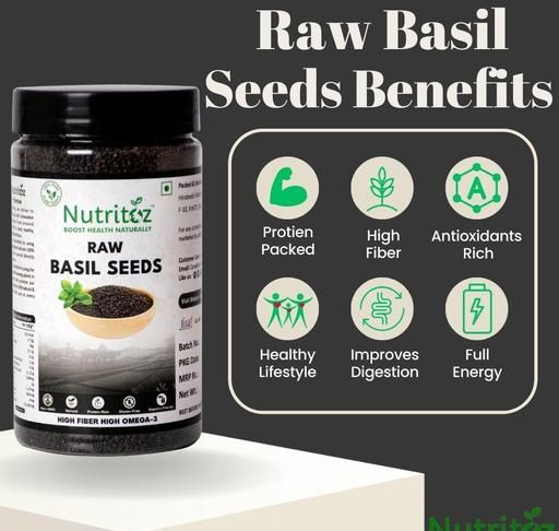 Nutritoz Basil seeds/Sabja seeds is a powerhouse of nutrients and offers numerous health benefits. It's rich in antioxidants, supports healthy digestion, and has anti-inflammatory properties. Basil also in stress reduction, boosts immunity, and promotes health. Its essential oils have antibacterial properties, making it a versatile herb for culinary and medicinal purposes.