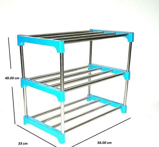 Name: 6 Pair Metal Shoe Stand/Rack Home Storagr For MultyPropse Rack Use Cloths Books Toys And Kitchen Product Storage Rack (Sky Blue, 3 Shelves)