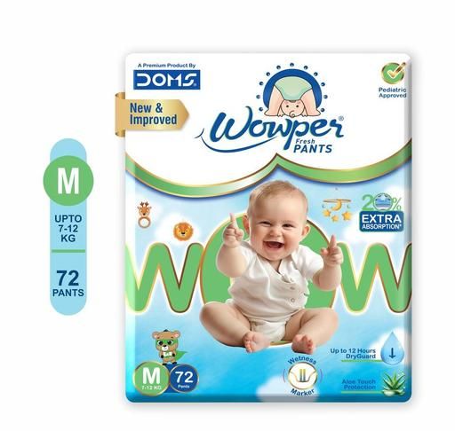 Product Name: Wowper Fresh Baby Diapers Pants | Wetness Indicator | Upto 12 Hrs Absorption | 7-12 Kg | Pack of 1 | Medium | 72 Pieces