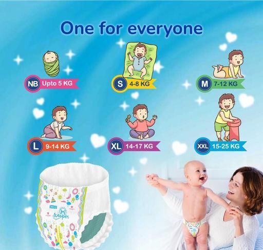 WOWPER is Indias softest baby diaper pants Brand and it is the best choice for your baby as their skin is like a feather, soft and sensitive. The new WOWPER range of Baby Diapers comes with a WETNESS INDICATOR which has a Yellow Strip inside, it will turn into Blue to alert, when the diaper needs to be changed. It is the only Pant Style Diaper in India which has a unique Air flow material which provides your baby a very Fresh feel all day. It has a very special 360-degree stretchable waist band which is Super Soft, Super Absorbing and keeps your baby comfortable all night long. Its Quick Lock Gel system freezes the moisture for up to 10 hours, which avoids irritation and gives the baby feeling of dryness. It has double layered side strips for Extra protection from side leakage. Its one-of-a-kind 3D Diamond Cross Core absorbent sheet spreads the liquid 8 glasses of urine uniformly (1 glass = 40ml) and avoiding the diaper to become heavy and bulky. The top layer comes with Cottony Ultra soft material which keeps the baby fresh and comfortable all night long. WOWPER fresh pants baby diapers are available in Newborn ( NB ), Small ( S ), Medium ( M ), Large ( L ), Extra Large ( XL ) And Double Extra Large ( XXL ) size diapers variant and it is very easy to Wear and Remove this type of diapers. All the sizes are particularly designed as per different baby weights. This pack of xxl s