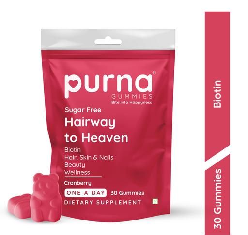 Name: Gummies Biotin Sugar Free Cranberry Flavour Gummy for Hair Growth, Nails, & Skin, 1 daily (30 No) Brand: Purna Gummies Form: Gummies Net Quantity (N): 30 Quantity: 250-499mg Shelf life (Best Before): 18 Months Type: Hair Skin Nail Veg/NonVeg: Veg Biotin is a powerful B-vitamin, supports in fatty acid production, which jump-starts sustainable hair and nail growth and skin regeneration. Purna Biotin Gummies are vegan friendly, shelf life stable and convenient. Biotin supports in cell growth. Cells grow at a consistent rate if the body is functioning with the right nutrients. As we age, our cell proliferation and metabolism decreases due to stress, diet, and exercise. An increased amount of Biotin that the body’s cells receive helps hair growth. When supplementing with Purna Biotin Gummies in the body, you can expect cell proliferation to increase and see healthier hair, skin, and nails! Country of Origin: India