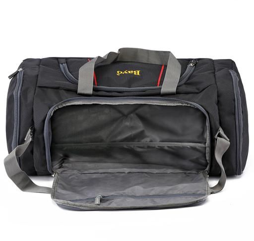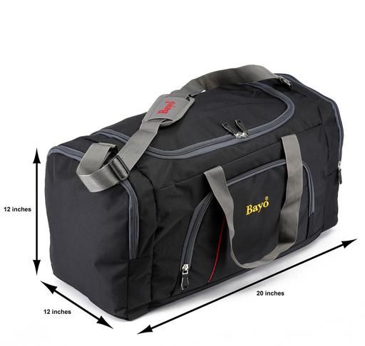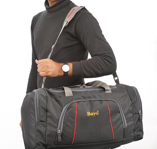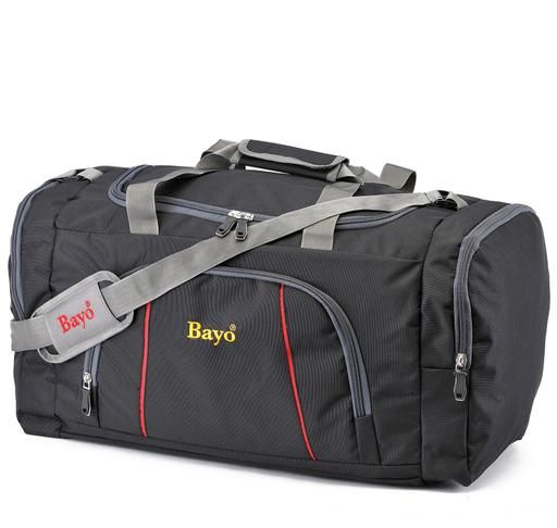 This BAYO s Travel duffle bag Easily travel with large loads This is Big Duffel Bag. 1 main compartment, 2 side Medium compartment , 1 interior hidden pocket, &1 pocket front of Bag Adjustable padded shoulder strap The roomy, collapsible bag features a rectangular shape and top loop handles for comfortable lifting and carrying. Its durable zipper unzips along three sides, making it effortless to access the interior for organizing or accessing stored items.