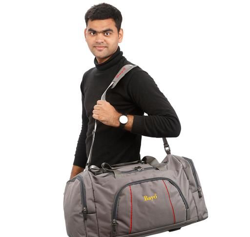 This BAYO s Travel duffle bag Easily travel with large loads This is Big Duffel Bag. 1 main compartment, 2 side Medium compartment , 1 interior hidden pocket, &1 pocket front of Bag Adjustable padded shoulder strap The roomy, collapsible bag features a rectangular shape and top loop handles for comfortable lifting and carrying. Its durable zipper unzips along three sides, making it effortless to access the interior for organizing or accessing stored items.