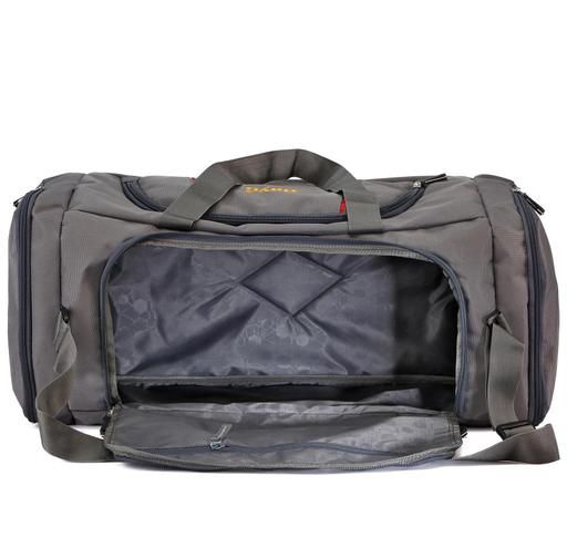 This BAYO s Travel duffle bag Easily travel with large loads This is Big Duffel Bag. 1 main compartment, 2 side Medium compartment , 1 interior hidden pocket, &1 pocket front of Bag Adjustable padded shoulder strap The roomy, collapsible bag features a rectangular shape and top loop handles for comfortable lifting and carrying. Its durable zipper unzips along three sides, making it effortless to access the interior for organizing or accessing stored items.