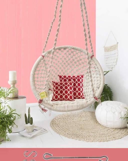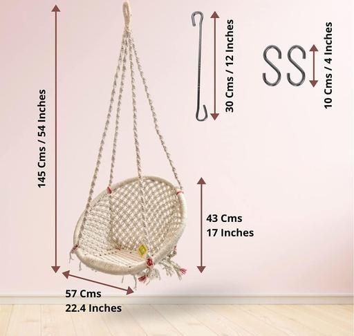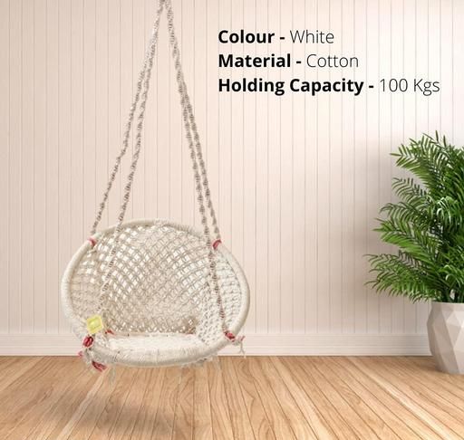 Name: Make in India Round Cotton Home Swing & Hammock Chair (145 cm X 57 cm X 43 cm, White, 100 kgs Capacity)