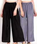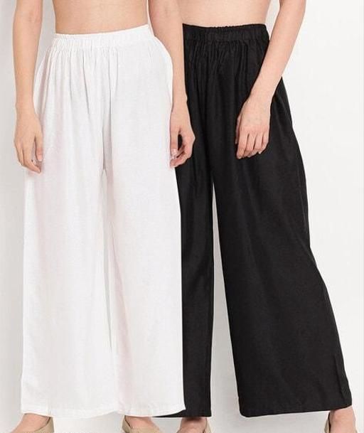 Women's 100% Pure & Soft Rayon PALAZZO made with High-Quality and Non-Transparent Rayon fabric are long women's trousers cut with a loose, extremely wide leg that flares out from the waist. PALAZZOS are popular as a summer season style as they are loose and tend to be flattering in light, flowing fabrics that are Comfortable, Lightweight and Breathable PALAZZOS with Best Quality fabric. It has Wide 1.5” ELASTIC-BAND Closure along with DRAWSTRING.