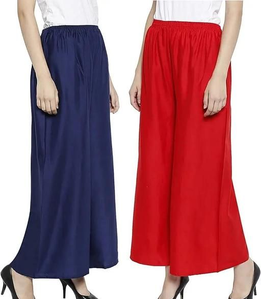Women's 100% Pure & Soft Rayon PALAZZO made with High-Quality and Non-Transparent Rayon fabric are long women's trousers cut with a loose, extremely wide leg that flares out from the waist. PALAZZOS are popular as a summer season style as they are loose and tend to be flattering in light, flowing fabrics that are Comfortable, Lightweight and Breathable PALAZZOS with Best Quality fabric. It has Wide 1.5” ELASTIC-BAND Closure along with DRAWSTRING.